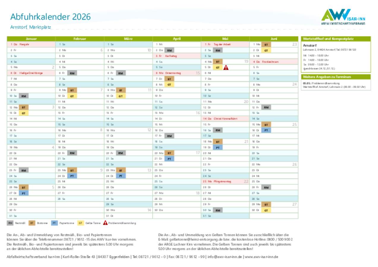des AAWV (www.awv-isar-inn.de) unter diesem link: https://www.awv-isar-inn.de/informationen/abfuhrkalender/ und auf der app des AWV verfügbar.