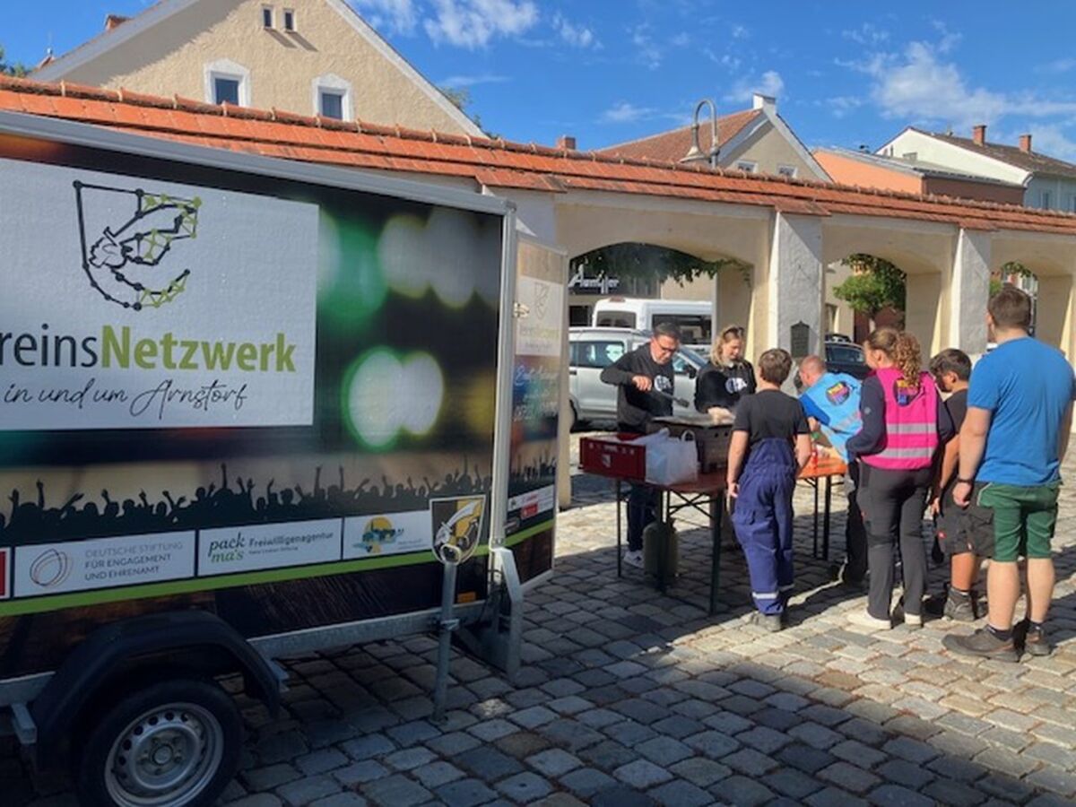 Nach getaner Arbeit wartete am Mittag eine wohlverdiente Stärkung auf die fleißigen Helferinnen und Helfer. Bürgermeister Christoph Brunner übernahm persönlich den Grill, die Verpflegung wurde vom Vereinsnetzwerk „in und um Arnstorf“ finanziert.