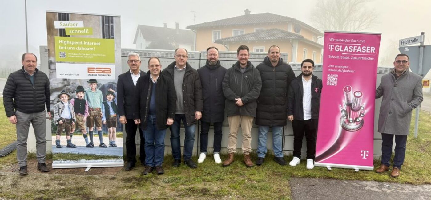 Die Kooperation zwischen der Energie Südbayern (ESB) und der Telekom bringt weitere Erfolge: Am Hauptverteiler in Münchsdorf, Gemeinde Roßbach, fand heute die feierliche „Netzhochzeit“ statt. Die Netze der beiden Unternehmen sind jetzt für die Gemeinden Arnstorf, Roßbach und Johanniskirchen miteinander verbunden. Es können nun 1.700 Haushalte und Unternehmen in den Gemeinden Arnstorf, Johanniskirchen, Roßbach, Oberbergkirchen und Lohkirchen, von einem schnellem Glasfaseranschluss der Telekom profitieren. Weitere Gebiete folgen bis 2027.