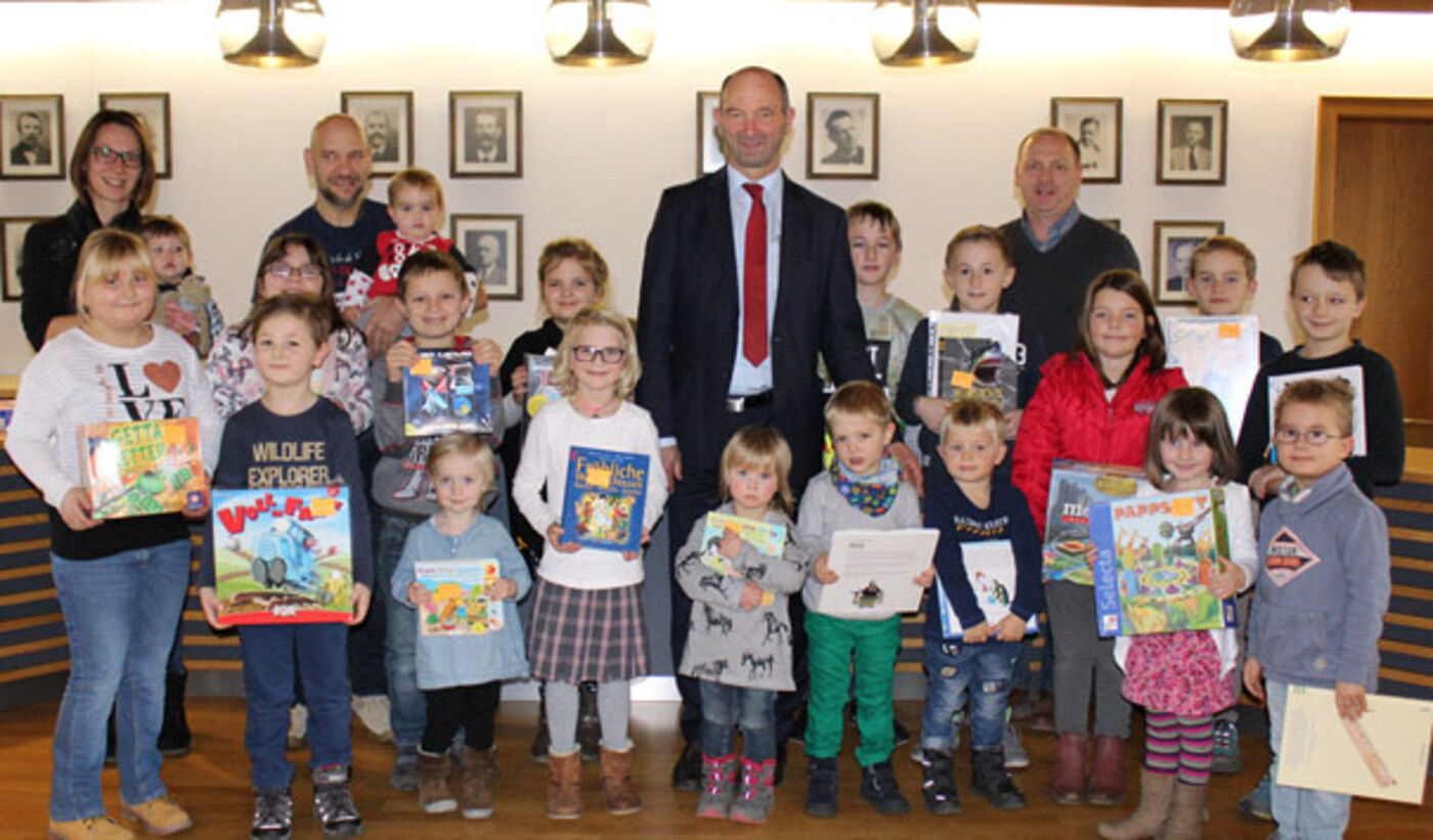 Und so kam bei der kleinen Feierstunde im Rathaussaal natürlich jede Menge Freude und gute Laune über Kuscheltiere, Bilderbücher, Spiele, Puzzle und vieles mehr auf.
