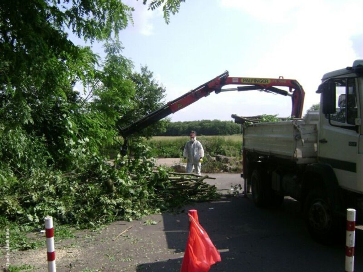 Eine Fällung ist in der Regel – insbesondere in städtischen Grünanlagen oder in privaten Gärten – aus Sicherheitsgründen unvermeidbar. Die Sozialversicherung für Landwirtschaft, Forsten und Gartenbau (SVLFG) rät, die Fällung und Aufarbeitung nur von dafür ausgebildeten Fachleuten vornehmen zu lassen, die über eine passende Ausrüstung und die notwendigen Kenntnissen verfügen.