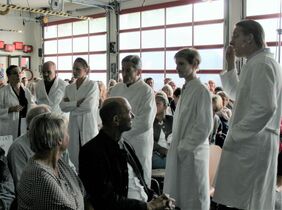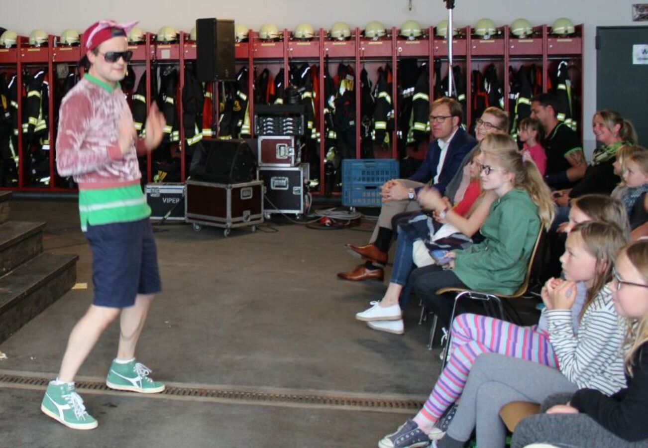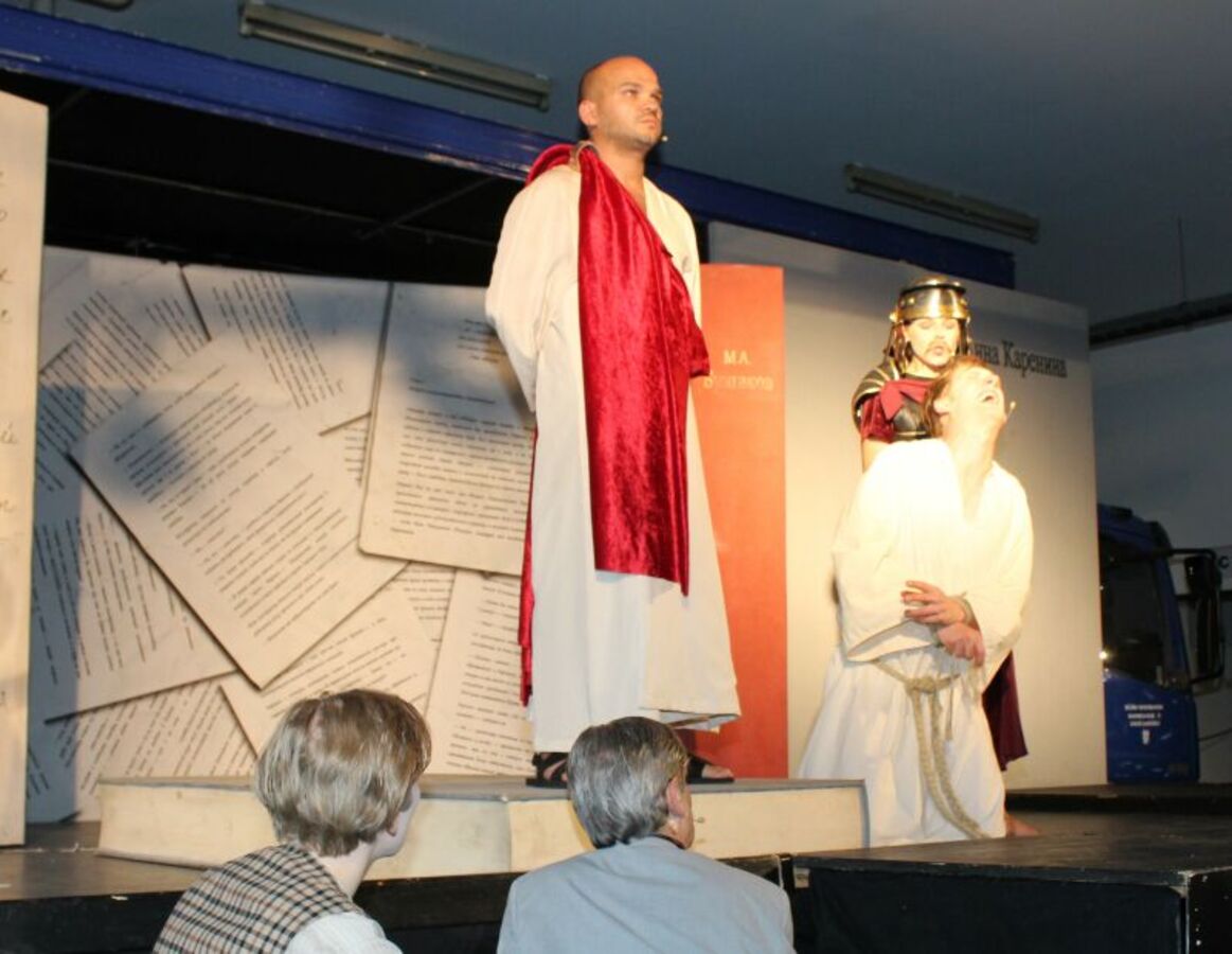 Zum 20. Mal ist das Kulturmobil des Bezirks Niederbayern in diesem Sommer auf Tour durch die Lande, weil im Jahr 2011 wegen des damaligen Mittelalterfestes kein passender Termin zu finden war, kam Arnstorf erst zum 19. Mal kostenlos und frei Haus in den Genuss des fahrenden Theaters. Wegen des Regens wurde einmal mehr das Gerätehaus der Feuerwehr zum Theatersaal. Bezirksrat Dr. Thomas Pröckl verband sein Willkommen für gut 100 kleine und große Zuschauer mit dem Dank an Organisatorin Ida Noneder vom Kulturreferat, an den gemeindlichen Bauhof und an die Feuerwehr für ihre Unterstützung. Dann hieß es Bühne frei für das Glückskind namens Hans. Ivana Nikolic als Carolin, Stefanie Steffen als Lilly und Sebastian Gerasch in der Rolle des Jannik zogen mit der Spielfassung des Märchens „Hans im Glück“ ihr Publikum in den Bann, nahmen es mit in die Geschichte des sympathischen Antihelden Hans, der voll Tatendrang in die Welt geht und mit seinem wertvollen Goldklumpen einen regen Tauschhandel beginnt. Doch weil jeder seiner Partner immer nur auf den eigenen Vorteil bedacht ist, wird der arglose Hans ein ums andere Mal über den Tisch gezogen. Als Hans am Ende nichts bleibt, er sich aber strahlend über ein tolles Abenteuer freut und nun wieder federleicht und glücklich ist, stellt sich die Frage, ob Besitz wirklich glücklich macht, gar nicht. Die Musik von Martin Kubetz, das Bühnenbild von Günther Brendel und die locker-leichte Darstellung der drei jungen Schauspieler ließen das Stück zu einem tollen Theatervergnügen für die ganze Familie werden. Am Abend lockte die Aussicht auf gute Unterhaltung über 150 Besucher an, die Bürgermeister Alfons Sittinger zum Stück „Der Meister und Margarita“ begrüßte. Die Schauspieler Johannes Schön, Isabel Kott, Ursula Berlinghof, Moritz Katzmair, Robert Spitz und Pia Kolb verstanden es mit hervorragendem Spiel, ihr Publikum von der fantastischen Satire nach dem gleichnamigen Roman von Michael Bulgakow zu faszinieren. Zu Beginn des prallen Theaterabends, der sowohl grandios unterhielt wie auch zum Nachdenken über die menschliche Natur anregte, kam auch das Publikum in den Genuss mehr oder weniger zutreffender Diagnosen des Professors einer Nervenheilanstalt und seines Ärzteteams. So wurde dem Bürgermeister eine „spontane Kommunikationshysterie“ bescheinigt, für die sich der Rathauschef lachend bedankte.